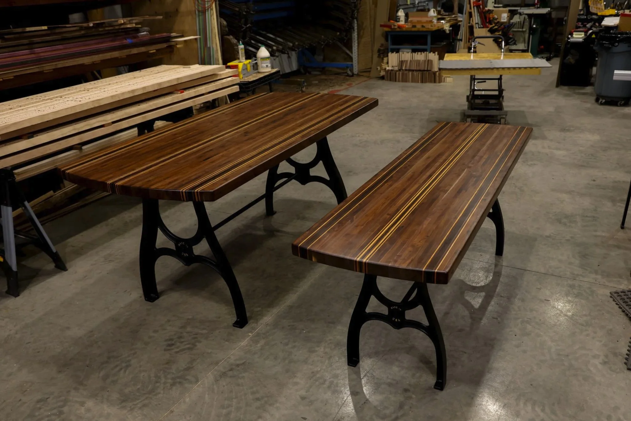 I also fabricate custom metal table bases and bench frames in-house.